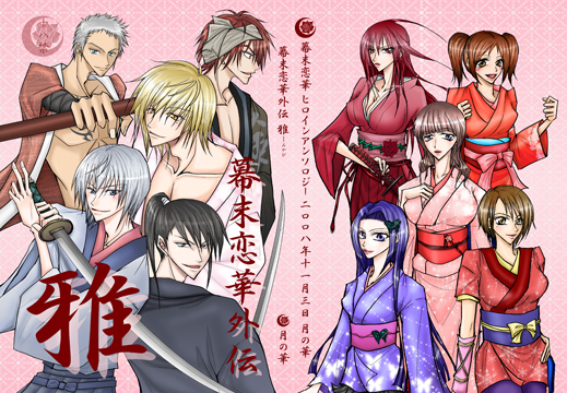 『幕末恋華外伝 雅』![]() 2008年11月3日 D3オンリー 新刊 B5/オフ/112P/1300円 漫画&小説/18禁 幕末恋華アンソロジー ◆執筆者◆ 銀木星さま/諷凛花散 紫上逢唯さま/泡沫草紙 ともさま/桜挿頭 youさま/ワン☆だふる本舗 + 紅月レン/月の華 新選組隊士さま、花柳館食客、 その他と各サイトオリジナルヒロイン が咲かせる恋の花を、 漫画と小説でお届けしますv |
